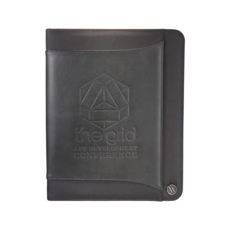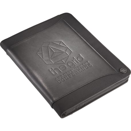 Zippered closure. Features a front document pocket and an interior document pocket. Interior organization panel includes elleven™ branded lining, elastic pen loops, business card pockets and a grip panel smartphone holder. 8.5" x 11" elleven™ series writing pad. Includes premium gift box. Pen not included.