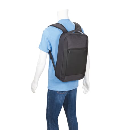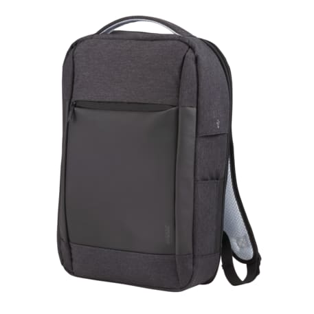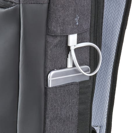Zoom® works to provide you the accessories you need for the technology you use every day. The Zoom® Covert Security Slim 15” Computer Backpack gives you the security you need with a slash proof body in a sleek and slim silhouette. The USB port and cord lets you charge your phone on the go while the elastic pass through in the pockets keep your cables organized. With a webbing trolley sleeve and a TSA-friendly 15” laptop sleeve, this bag makes the perfect travel companion.