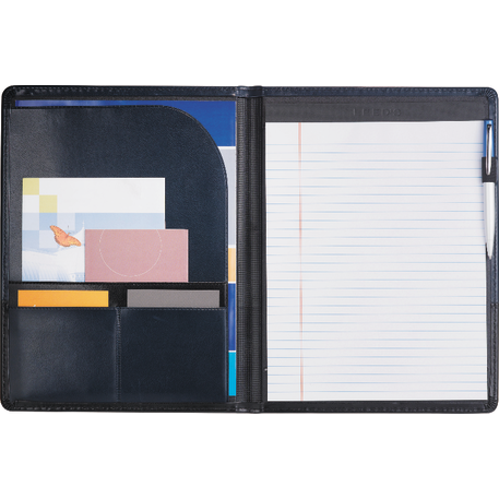 Interior organizer. Pen loop. Includes 8.5"x 11" writing pad. Refills available at leedsworldrefill. Refill item number 9091-01. Pen not included.