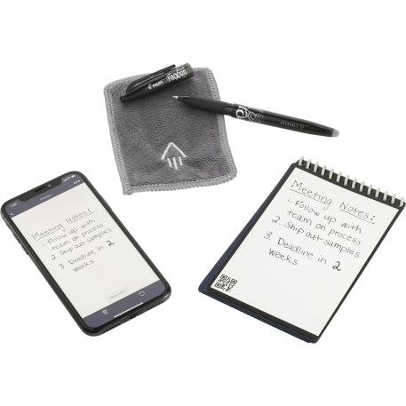 The Rocketbook Mini Notebook is designed for every classroom, office, and personal mission. The synthetic dotted paper allows you to write smoothly with a Pilot Frixion pen, then magically wipe clean with the included microfiber cloth when damp to reuse again and again! Use the Rocketbook app to blast your notes, plans, lists, and big ideas to your favorite cloud service for proper organization. Then, erase and reuse your Flip for your next adventure. This hard cover notebook contains 48 pages. Premium retail gift box.
