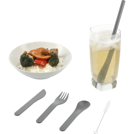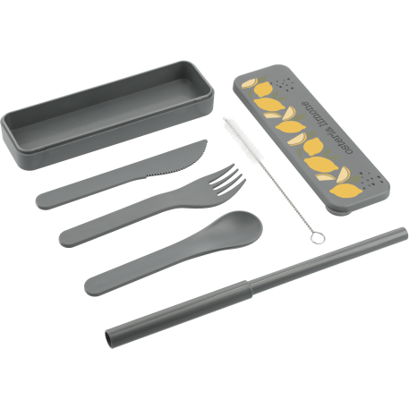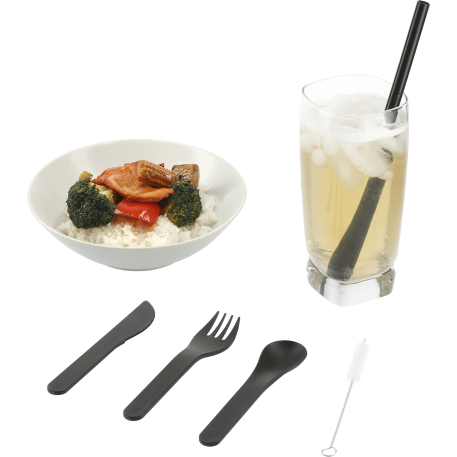 This 4 piece set includes a straw, fork, spoon and knife in a convenient carrying case. Cleaning brush for straw included. The set is made from PLA, a bio plastic made from polyactic acid that is created with plant starches. The set is perfect for being on the go and eliminating the use of disposable plastic utensils! Through a partnership with 1% For The Planet, one percent of sales of this and all EcoSmart products will be donated to nonprofits dedicated to protecting the planet.