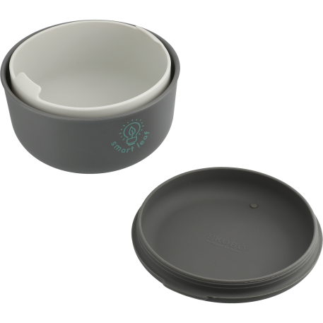 This lunch set includes Ekobo's signature FSC certified bamboo base with silicone lid and silicone food compartment. The insert can be used in the microwave or oven to warm food. This the ultimate on the go set.