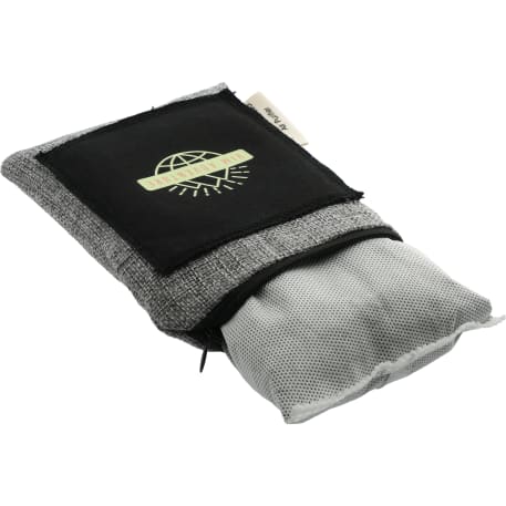 The Odor Absorbing Travel Pouch features bamboo charcoal that can help absorb odor and keep any space fresh. These reusable bags work great anywhere, in our suitcase, your gym duffel, your shoes, or even in your car. Instructions on the reverse side of the woven label help guide users on how to use the piece. Place the pouch outside for an hour once a month to “recharge”. The bamboo charcoal is good for up to 2 years.
