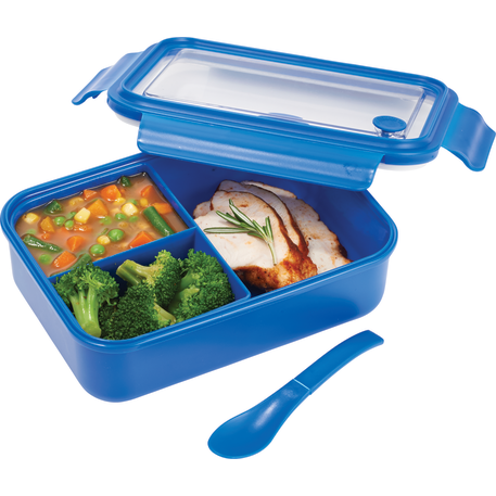 The Three Compartment Food Storage Bento Box is perfect for packing a healthy meal.This BPA-free container features sections for a main dish and two sides. The bento box is microwave safe allowing meals to be heated.