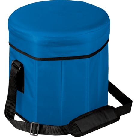 12" high and wide, this cooler seat can support up to 200 pounds and keeps up to 24 drinks or food cold with its insulated liner. Ultra-portable, the cooler seat folds completely flat to store when not in use. To prolong the use of the cooler bag, we do not recommend the use of loose ice cubes. Sharp edges may puncture holes and cause leaks. For best results, use with reusable freezer packs.