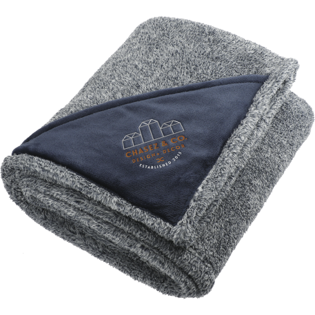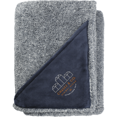 The long threaded, fuzzy and soft hand feel of this 240 gsm polyester fleece blanket is sure to warm your body and your spirit and makes an excellent addition to any home of office space. The multicolored threads give a heathered look to this extra soft and warm 50"x60"x3/8" unfolded blanket and the solid color triangle embroidery patch will allow you to professionally display and show off your company logo. Free embroidery run charges on up to 10,000 stitches. Folded dimensions are 15" x 12.5" x 6". This blanket is spot clean only.