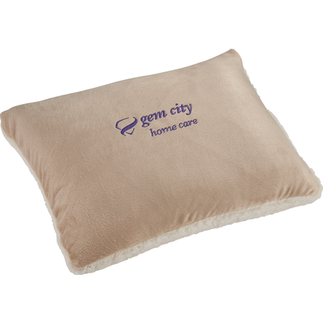 The Sherpa on the Go is first a luxurious and comfortable Sherpa blanket that second can conveniently be folded and converted into a pillow. The blanket measures 50"x60" and has soft microplush on one side and thick 190g Sherpa on the other side providing extra comfort and warmth. The blanket easily folds into a pillow with zipper closure making it easy to take anywhere. Whether using in the car, plane or lounging outside, this blanket offers the best of comfort, style and convenience. Free run charges on embroidery up to 10,000 stitches. Folded dimensions are 18.5" x 13.5" x 3.5". This blanket is spot clean only.
