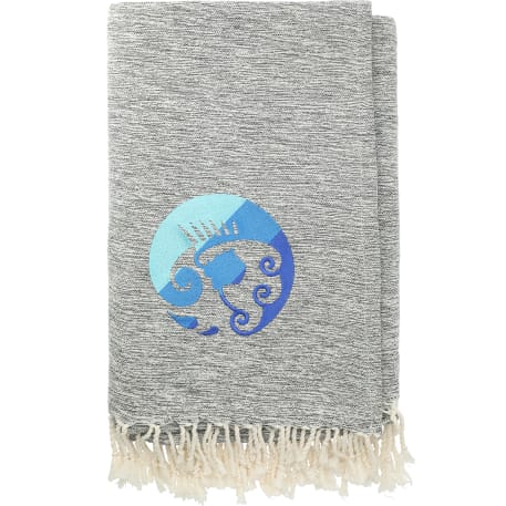 Meet the Hilana Upcycled Yalova Ultra Soft Marbled Blanket. Made with 50% recycled cotton, it's extra durable and gets softer with each wash. Hilana blankets will dry you quicker than a regular towel, and they will dry faster too. Composition: 50% recycled cotton + 50% natural cotton. Unfolded this blanket measures 71" x 59". Through a partnership with 1% For The Planet, one percent of sales of all EcoSmart® products are donated to environmental nonprofits. This blanket is spot clean only.