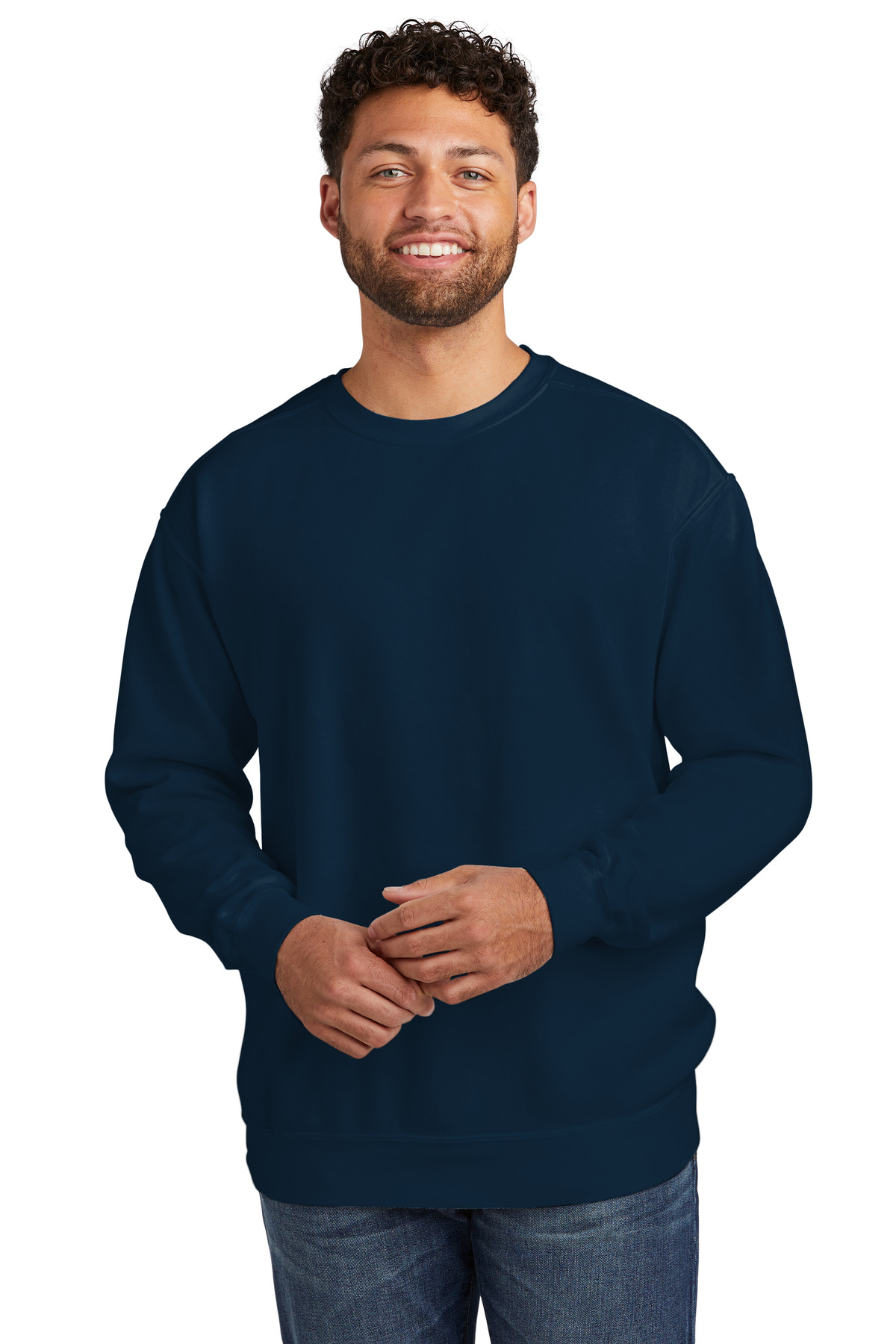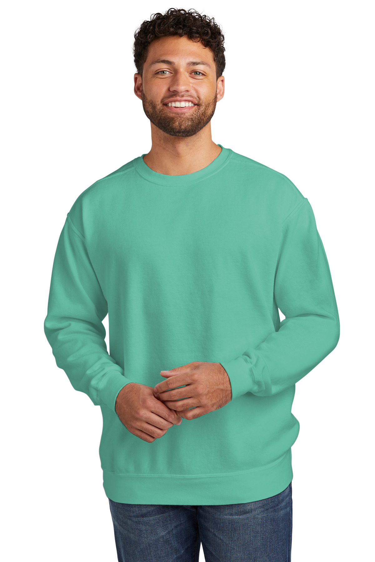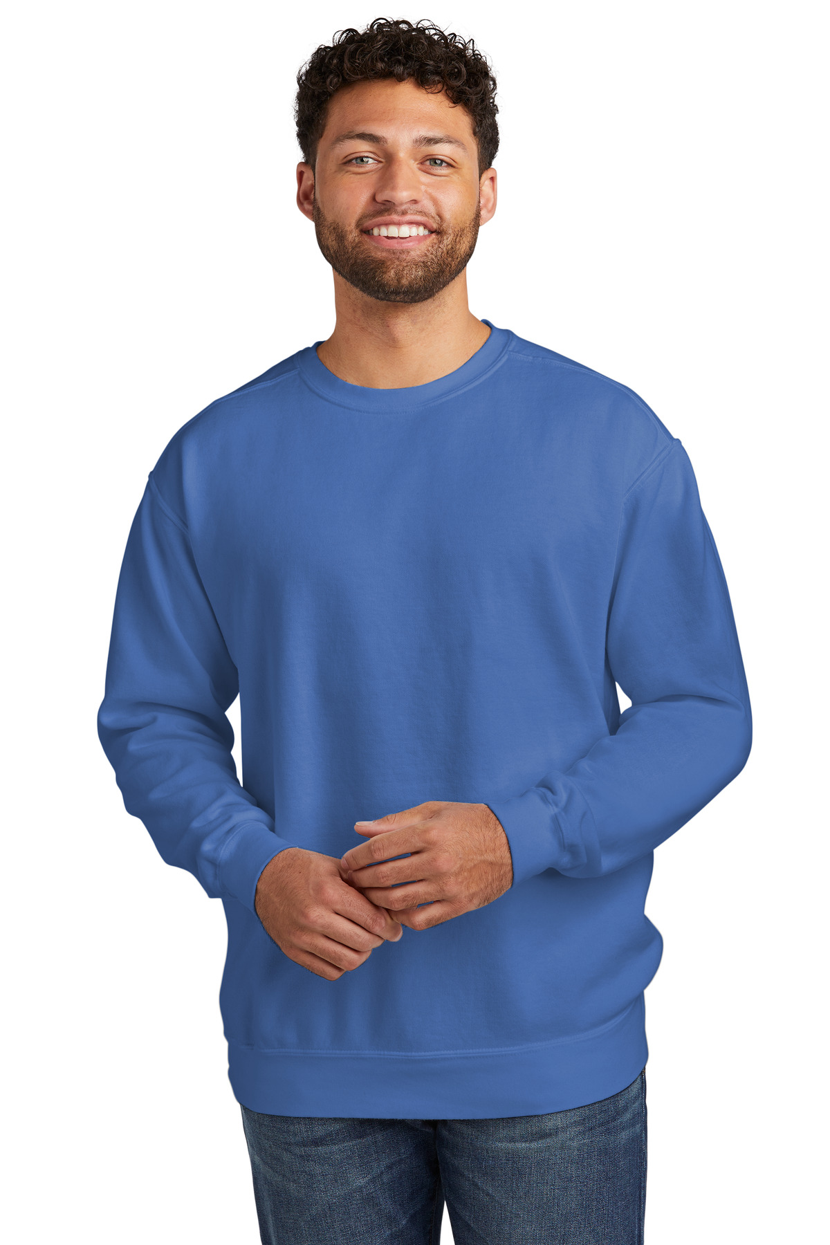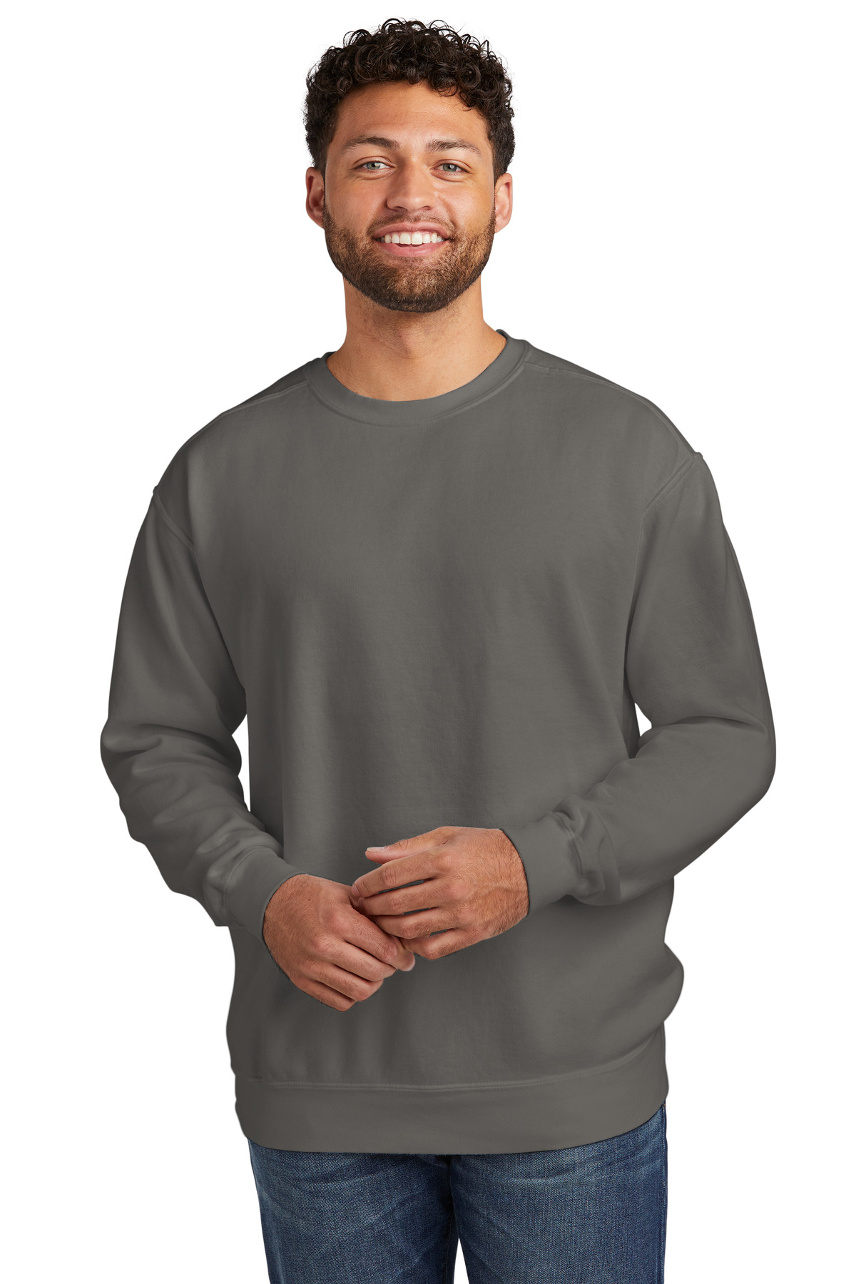 9.5-ounce 80/20 ring spun cotton/poly Soft-washed garment-dyed fabric 1x1 rib knit on collar cuffs and hem Double-needle collar Twill-taped back neck Rolled forward shoulder Back patch Twill label Double-needle neck shoulder armhole cuffs and hems