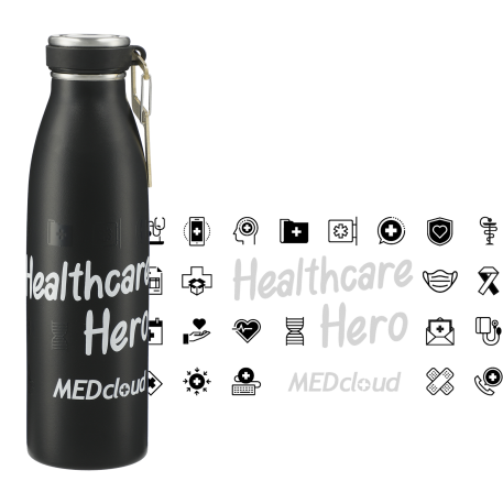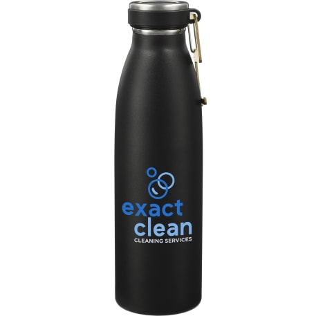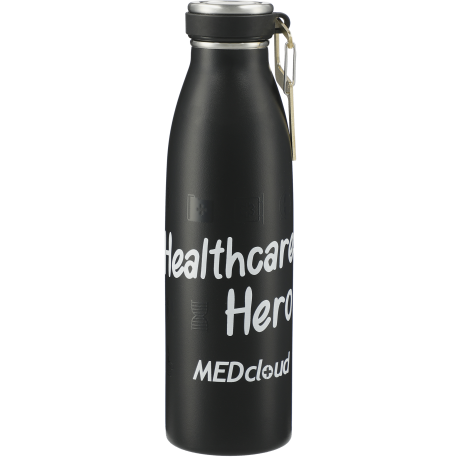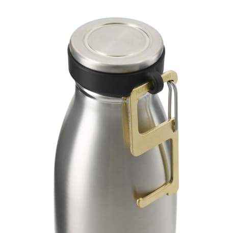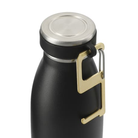 Durable, double-wall stainless steel vacuum construction with copper insulation, which allows your beverage to stay cold for 48 hours and hot for at least 12 hours. The construction also prevents condensation on the outside of the bottle. Wide opening for comfortable filling and pouring. Perfect for ice cubes. Fits most standard car cup holders. On-trend, durable powder coating. Screw-on, spill resistant lid with stainless steel top and attached with durable multi-functional no contact tool. This keychain tool helps to avoid contact with dirty, contaminated surfaces. This multi-purpose tool can be used when opening doors, pressing buttons, using the ATM, and carrying shopping bags. Made from brass. Hook shape designed to grab a handle and open doors. The end can be used to push elevator buttons. The carabiner design can be easily applied for any occations. 17oz.