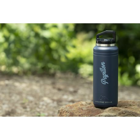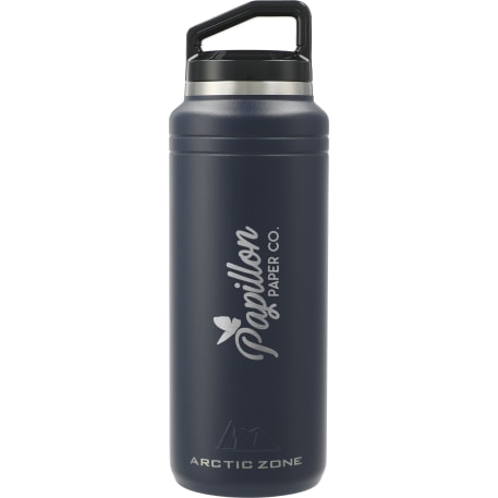 The Arctic Zone® Titan Thermal HP® Copper Bottle 32oz is designed for style and durability. Double-wall, 18/8 grade stainless steel vacuum construction with copper insulation keeps beverages hot for up to 12 hours or cold for up to 48. The powder-coated finish helps prevent condensation on the outside of the bottle. The bottle features a smoke-colored, translucent, screw-on, spill-proof lid and a wide mouth opening for easy cleaning and filling. Leed’s exclusive.
