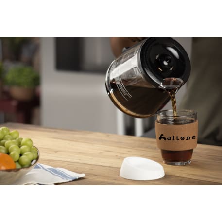 The Brooklyn Glass Cup with Cork Band 12oz is perfect for your favorite hot beverages. Single-walled, tempered-glass construction means it’s great for coffee, tea or any other hot beverages. The cork band lets you grip the cup comfortably, even when your drink is super hot. The silicone push-on lid helps prevent spills and features a small opening for sipping. This cup is not microwave-safe, but it is dishwasher safe when the cork band is removed.