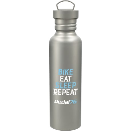 The Griffen Titanium Sport Bottle 25oz is made from high quality single wall titanium for a lightweight and pure drinking experience. Weighing much less than steel, its perfect for exploring the outdoors or the city without adding additional weight. This bottle features a titanium screw on lid with a silicone gasket to prevent leaking. Its wide mouth allows for easy filling and cleaning. FSC certified premium gift box is included. Recommended to hand wash only. 25oz.