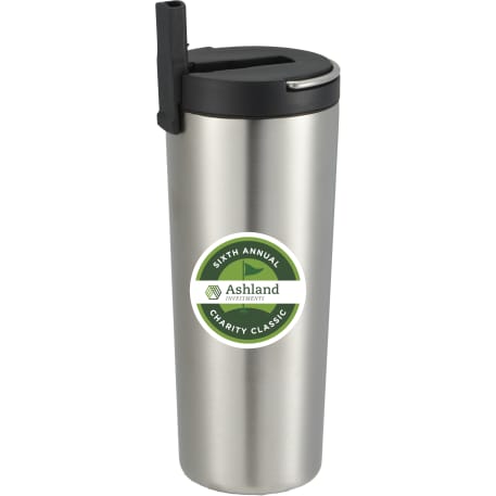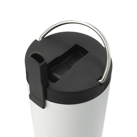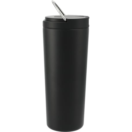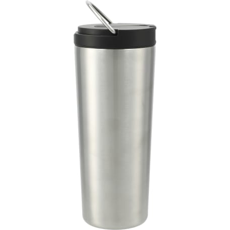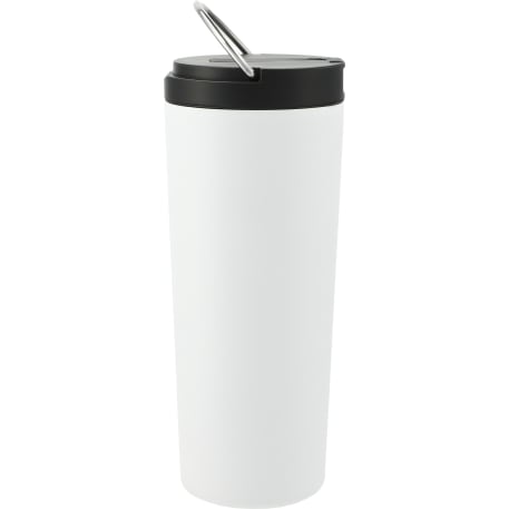 It’s here and just the right size for your daily use! Durable, double-wall stainless steel vacuum construction with copper insulation, which allows your beverage to stay cold for up to 24 hours and at least 8 hours for hot beverages. The construction also prevents condensation on the outside of the tumbler. On-trend, durable powder coating. Easy sipping, screw-on lid with pop-up straw. The intigrated metal loop built into its lid is perfect for on-the-go convenience. Wide opening for comfortable filling and pouring. Fits most car cup holders. 24oz. Leeds exclusive. Note: Drinking hot beverages with the straw is not recommended. Remove lid to allow beverage to cool.