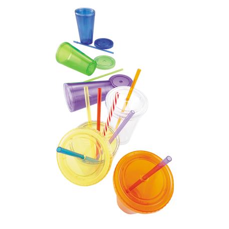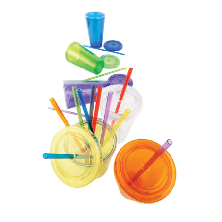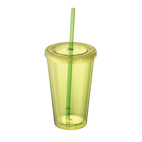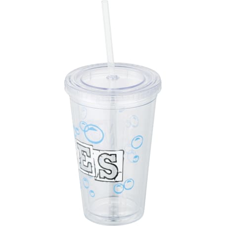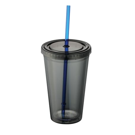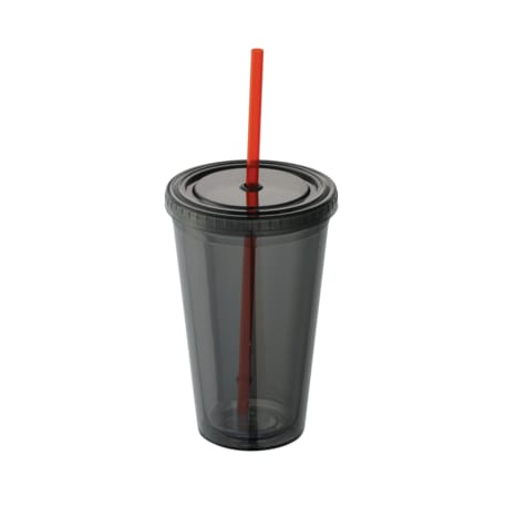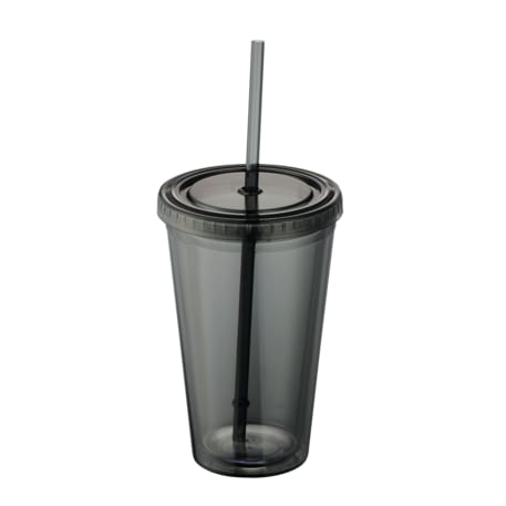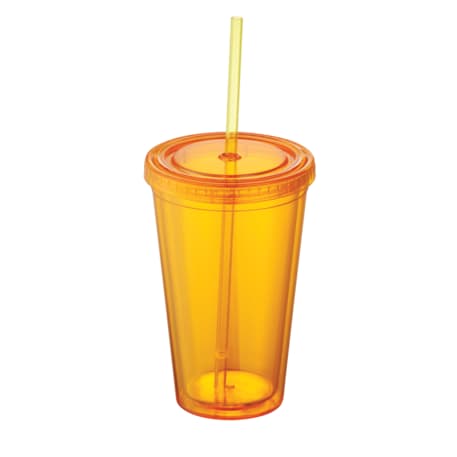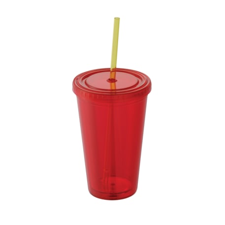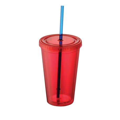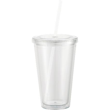 Double-wall acrylic tumbler and straw with stopper. Product ships with matching color straw unless specified otherwise in purchase order. BPA free. 16oz.