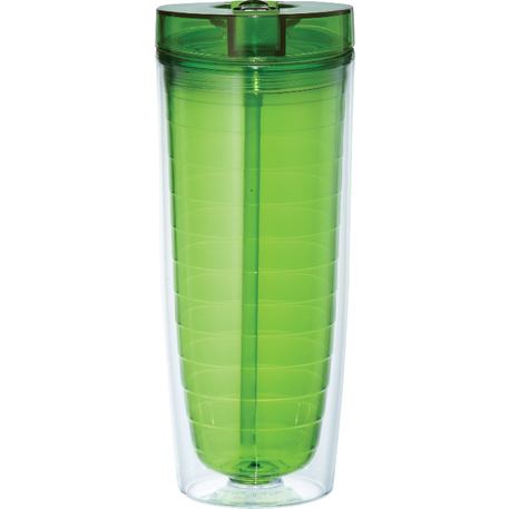 Some like it hot & some like it cold, with this patented two-in-one lid you can have both. Double-wall acrylic body with screw-on lid that has a pull up stopper for drinking hot beverages and an integrated pull up straw for cold beverages. BPA free. Leed's Exclusive. US Patent No.: US 8,672,174 B1. 20oz.
