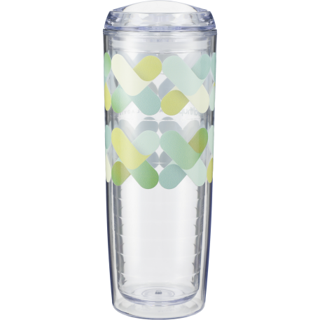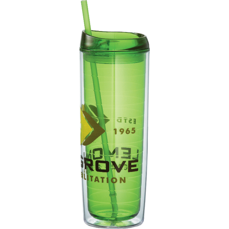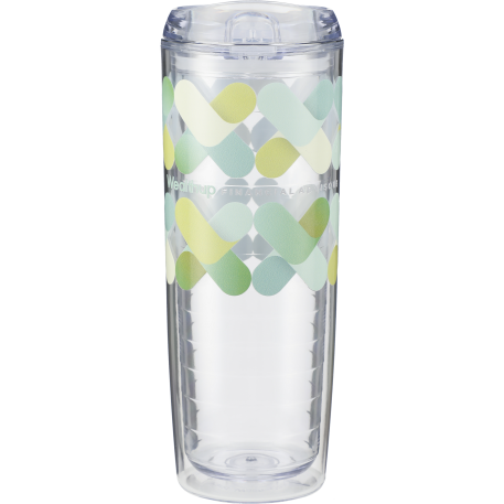 Some like it hot & some like it cold with this lid you can have both. Double-wall acrylic body with push on thumb-slide lid. For hot and cold beverages. Polypropylene straw with stopper for cold beverages. BPA free. 24oz.