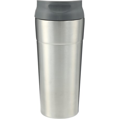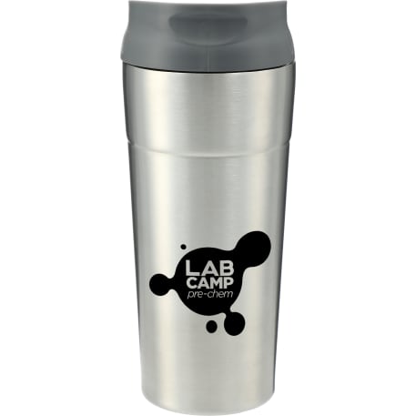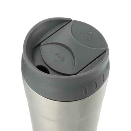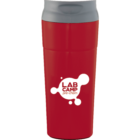 Ohh la la this double-wall stainless colorful tumbler will delight you. Easy drink through thumb-slide push-on lid. The thumb slide color matches the body. BPA free. 17oz.