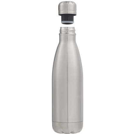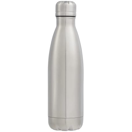 Bottle is double wall 18/8 grade stainless steel with vacuum insulation. Inner wall is plated with copper for ultimate conductivity to keep drinks hot for 12 hours and cold for 48 hours. 17oz.