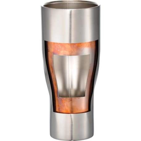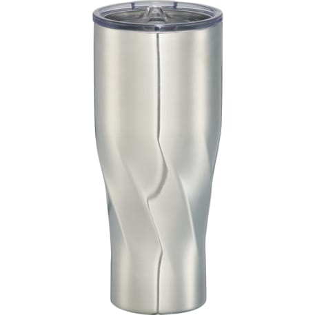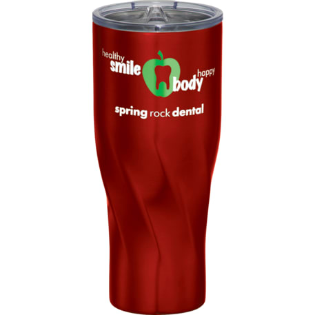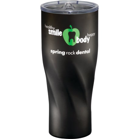 Do not miss the most trendy tumbler of the year. Durable, double-wall stainless steel vacuum construction with copper insulation, which allows your beverage to stay cold for 24 hours and at least 8 hours for hot beverages. The construction also prevents condensation on the outside of the tumbler. Push-on two piece lid with Tritan™ swivel anti-spill closure, pinch the 2 axis joints slightly to remove the top part of the lid for easy cleaning. Wide opening for comfortable filling and pouring. Design features the spinning, geometric bottom. Leed's Exclusive. 30oz.