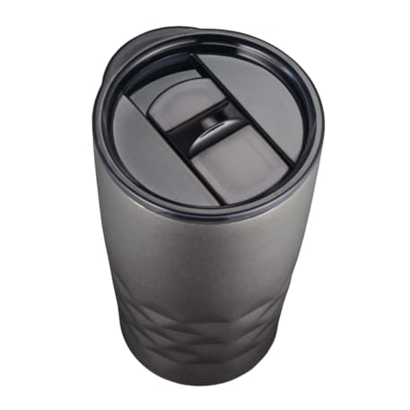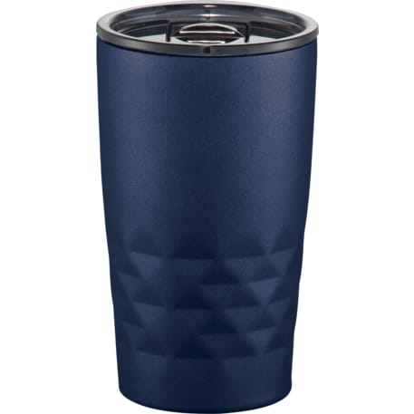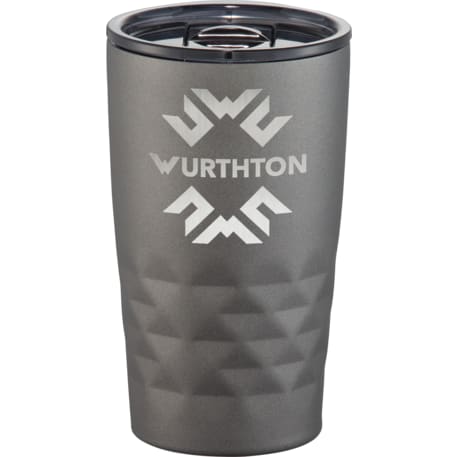 Part of our Bold Geometry trend collection this style is defined by angles that create a great tactile and visual experience. Double-wall vacuum construction with copper insulation. Keeps drinks hot for 8 hours and cold for 24 hours. The construction also prevents condensation on the outside of the tumbler. Compact design fits easily under most single cup or K-cup coffee makers as well as in all standard cup holders. Easy sipping, push-on lid with slide closure. Wide opening for comfortable filling and pouring. Leed’s Exclusive. 14oz.
