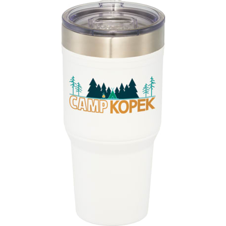 Do not miss the most trendy tumbler of the year. Durable, powder spray color. Double-wall 18/8 grade stainless steel vacuum construction with copper insulation, which allows your beverage to stay cold for 24 hours and at least 8 hours for hot beverages. The construction also prevents condensation on the outside of the tumbler. Easy sipping, push-on lid with slide closure. Wide opening for comfortable filling and pouring. 30oz. Leeds Exclusive.