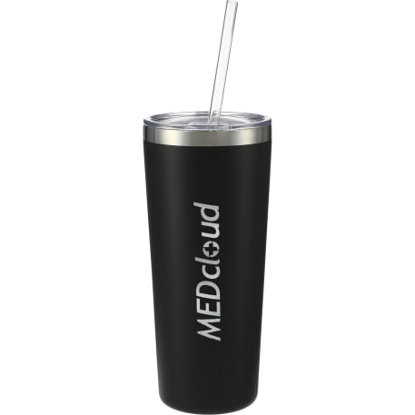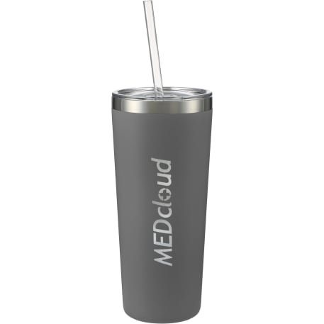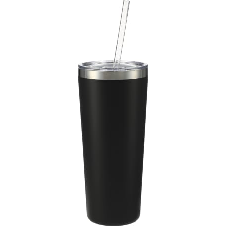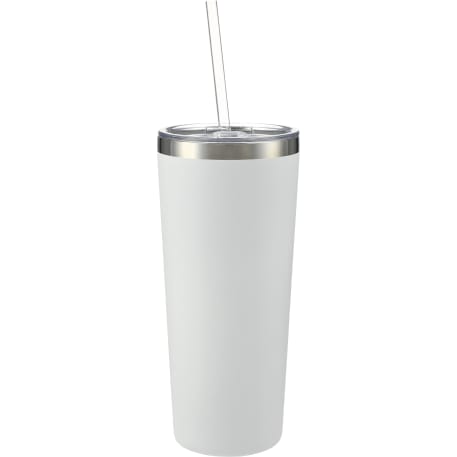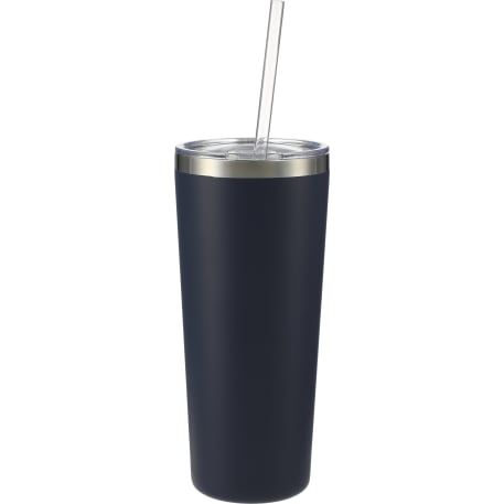 It’s here and just the right size for your daily use! Durable, double-wall stainless steel vacuum construction with copper insulation, which allows your beverage to stay cold for 24 hours and at least 6 hours for hot beverages. The construction also prevents condensation on the outside of the tumbler. On-trend, durable powder coating. Easy sipping, push-on lid. Eastman Tritan™ straw included. Wide opening for comfortable filling and pouring. Fits most car cup holders. 22oz.