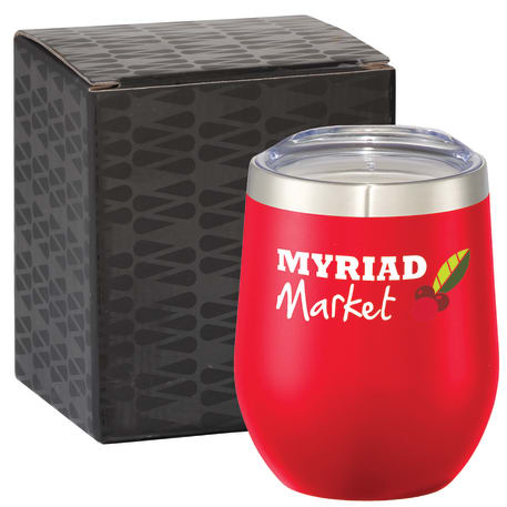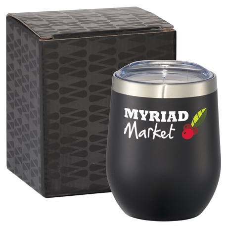 Enjoy your drink at any moment! Durable, double-wall 18/18 stainless steel vacuum construction with copper insulation, which allows your beverage to stay cold for 24 hours and hot for at least 6 hours. The construction also prevents condensation on the outside of the tumbler. Perfect accessory for wine. Easy sipping, push-on lid. Wide opening for comfortable filling and pouring. Durable powder spray color. 12oz. Drinkware is 1625-53. Gift Box size: 93 x 93 x 124mm.