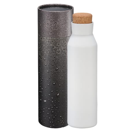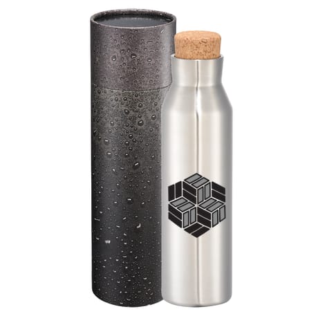 With this innovative cork look, screw-on lid design, your next promotion will be sure to stand out. Durable, double-wall stainless steel vacuum construction with copper insulation, which allows your beverage to stay cold for 48 hours and hot for at least 12 hours. The construction also prevents condensation on the outside of the bottle and the lid is spill resistant. Fits most standard car cup holders. 20oz. Drinkware is 1626-01.