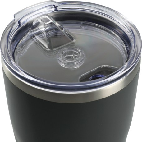 Durable, double-wall stainless steel vacuum construction with copper insulation, which allows your beverage to stay cold for 24 hours and at least 8 hours for hot beverages. The construction also prevents condensation on the outside of the tumbler. On-trend, durable powder coating. Push-on two piece lid with Tritan™ swivel closure, pinch the 2 axis joints slightly to remove the top part of the lid for easy cleaning. Wide opening for comfortable filling and pouring. Design features the spinning, geometric bottom. Leed's Exclusive. 20oz. Laser Plus tier 1 available on all colors. Laser engraving silver Drinkware will result in a subtle, tone on tone decoration.