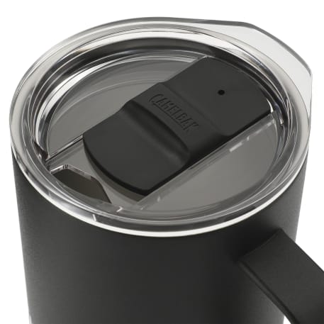 From sunrise to sunset. The strong and durable powder coat finish keeps the Camp Mug looking good on the outside, while copper vacuum insulation keeps drinks at ideal temperature on the inside. The tri-mode tumbler lid slides open for variated flow and is spill resistant when closed. A non-slip silicone pad on the base provides a soft landing on surfaces to avoid scratches and spills. 6 Hours Cold, 4 Hours Hot. Recommended to hand wash only. Leed’s Exclusive. 12oz.