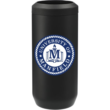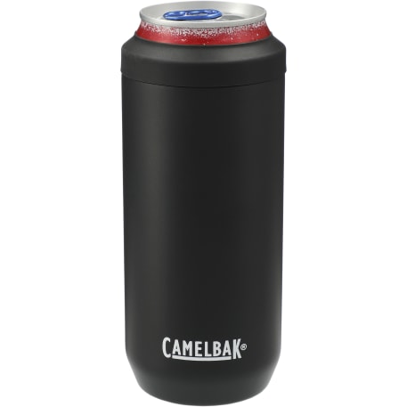 Warm summer nights by the campfire are even better with the CamelBak® Slim Can Cooler 12oz. This ultra-convenient vacuum-insulated can cooler is able to easily fit a variety of can and bottle sizes, keeping your beverage well-protected and extra cold. It features non-slip twist-lock collar, as well as a non-slip silicone base. It is constructed with double-wall 18/8 stainless steel material and sweat-proof vacuum insulation in between. This 12oz can cooler comes with the durable powder coating and it is BPA-free. Leed’s Exclusive. Fits most standard 12oz slim beer or seltzer cans.
