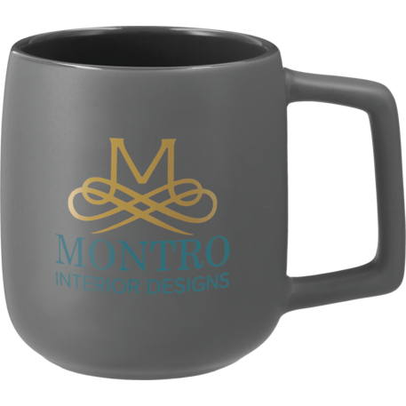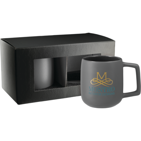 Includes 2 Sienna ceramic mugs 1626-41. Ceramic mug with smooth, matte outer wall and gray colored, high-gloss inner wall. Choose between color imprinting or our cutting edge, dishwasher safe laser decorating method. Leed's Exclusive 14oz. Gift Box is not decorated.