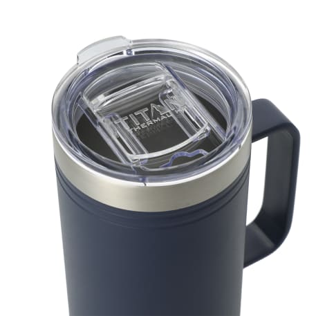 The Arctic Zone® Titan Thermal HP Copper Mug 24oz is one of the most on-trend mugs of the year. It helps you warm up the campfire ambiance while drinking your tea or coffee with this classic camp cup style. It features a durable, double-wall stainless steel vacuum construction with copper insulation, which allows your beverage to stay cold for 24 hours and hot for at least 8 hours. The construction also prevents condensation on the outside of the piece. Comes with an on-trend, durable powder coating. Easy sipping, push-on lid with slide closure. The wide opening is comfortable filling and pouring. 24oz.