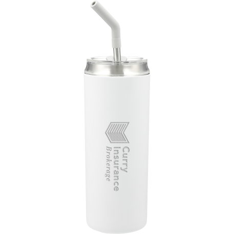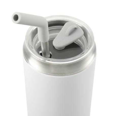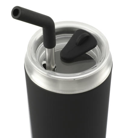 The Marka Copper Vacuum Insulated Tumbler features durable, double-wall stainless steel vacuum construction with copper insulation, which allows your beverage to stay cold for 24 hours and hot for at least 8 hours. The construction also prevents condensation on the outside of the tumbler. Comes complete with the on-trend, durable, powder coated appearance and a push-on, see-through, spill resistant lid with the silicone closure. The reusable straw is made of 18/8 food grade stainless steel material and is perfect for drinking cold beverages. Comfortable sipping experience with the silicone tips. The stainless steel straws are Eco-friendly, environmentally responsible, and sustainable as they are reusable and dishwasher safe. Straws are included not inserted. Leed's exclusive. 20oz.