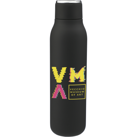The Marka Copper Vacuum Insulated Bottle features durable, double-wall stainless steel vacuum construction with copper insulation, which allows your beverage to stay cold for 48 hours and hot for at least 12 hours. The construction also prevents condensation on the outside of the bottle. Comes complete with the on-trend, durable, smooth-touching powder coated appearance and a screw-on, spill resistant lid and a durable, zinc-alloy hand loop. Fits most standard car cup holders. Leed's exclusive. 20oz.