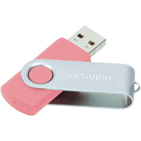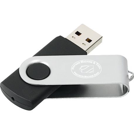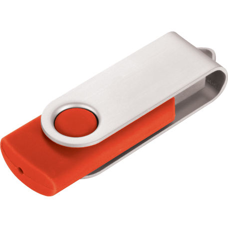 Flash drive folds into a protective aluminum cover. RoHS compliant. Plug and play technology on Windows XP or above and Mac OSX or higher.
