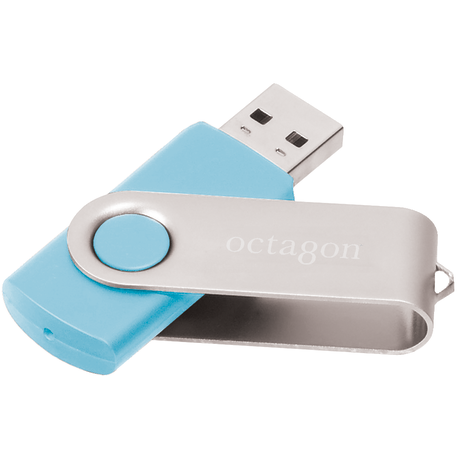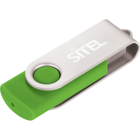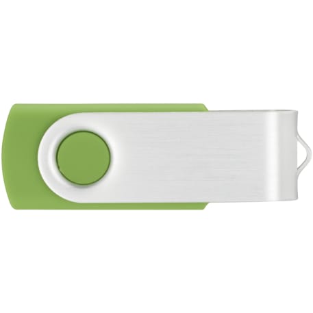 Flash drive folds into a protective aluminum cover. RoHS compliant. Plug and play technology on Windows XP or above and Mac OSX or higher.
