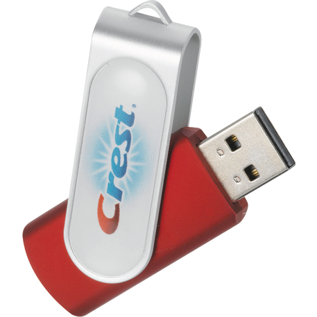 Flash drive folds into a protective aluminum cover. RoHS compliant. Domed decorating method provides logo pop. Plug and play technology on Windows XP or above and Mac OSX or higher.