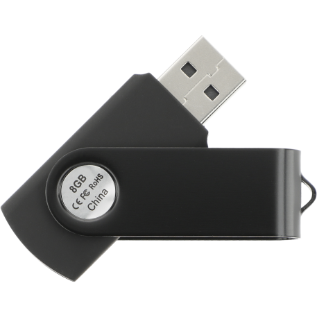Flash drive folds into a protective aluminum cover. RoHS compliant. Plug and play technology on Windows XP or above and Mac OSX or higher.