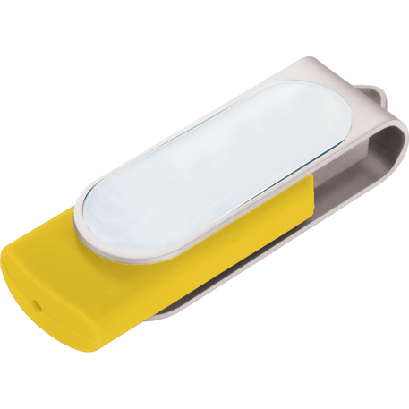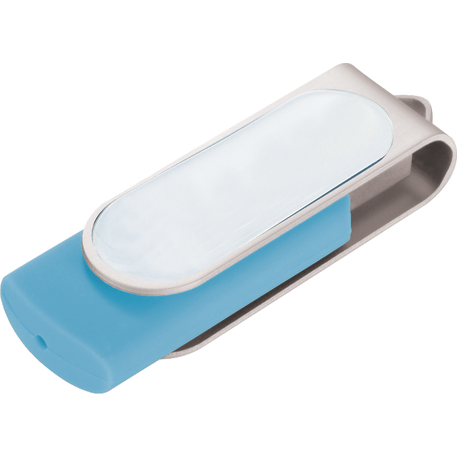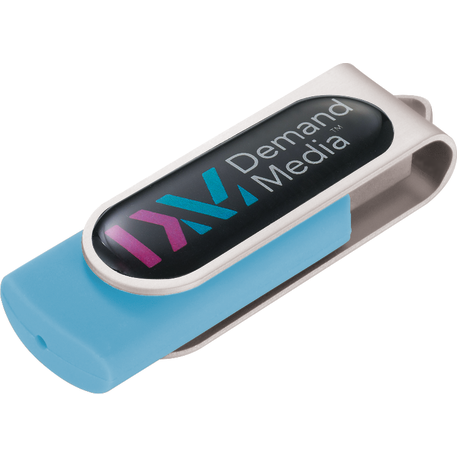Flash drive folds into a protective aluminum cover. RoHS compliant. Domed decorating method provides logo pop. Plug and play technology on Windows XP or above and Mac OSX or higher.