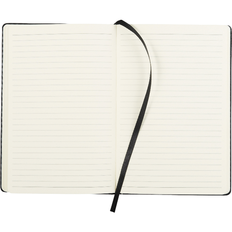 Automotive inspired carbon fiber hard cover. Built-in elastic closure. Ribbon page marker. Expandable accordion pocket. Includes 80 sheets of cream lined paper.
