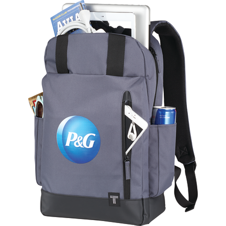 The Tranzip 15" Computer Day Pack helps you navigate your way through the city with style. The daypack design helps get you around town and features a wipe-clean tarpaulin bottom and a large zippered front pocket for quick access items. Top loops to secure a light rain jacket or umbrella. Main compartment holds a tablet and up to a 15.6 inch laptop. Features an interior mesh pocket and side water bottle pockets.