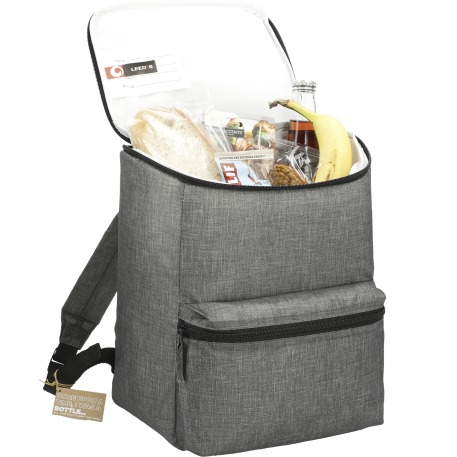 The Excursion Recycled Backpack Cooler is made from RPET. This backpack cooler features a large PEVA lined, zippered main compartment that's perfect for taking with you on a hike or picnic. The mesh side pocket makes carrying your water bottle an ease. Store essentials in the front zippered pocket. Get the perfect fit with the adjustable, padded shoulder straps. Through a partnership with 1% For The Planet one percent of sales of this and all EcoSmart products will be donated to nonprofits dedicated to protecting the planet.