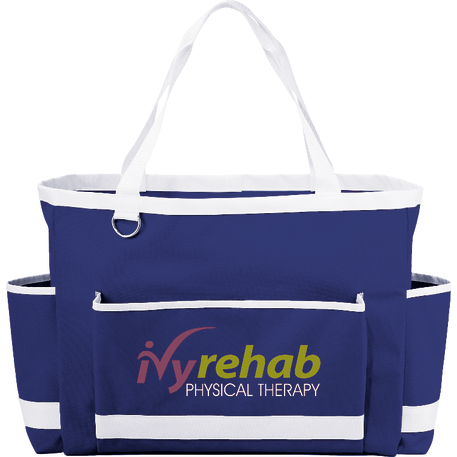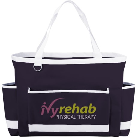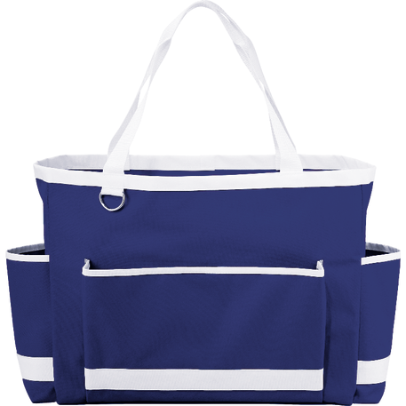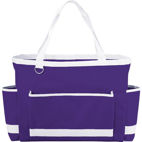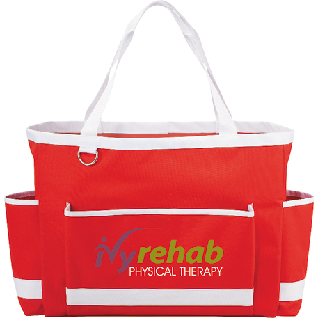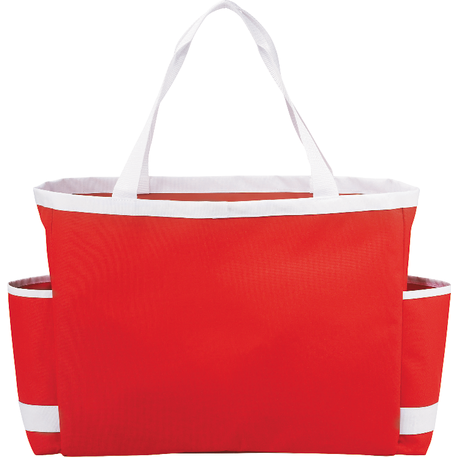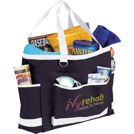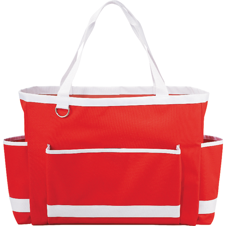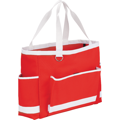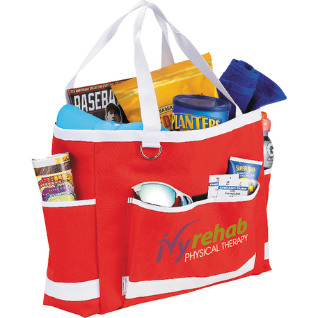 As part of Leed's exclusive Game Day Collection, this tote is ideal for sporting and outdoor events. Inspired by sports jerseys and offered in your team's colors. Open main compartment. Open front pocket with hook and loop closure. Two large side pockets. D-ring. 10.5" handle drop height.