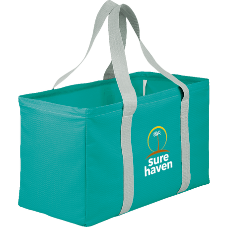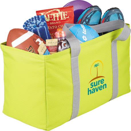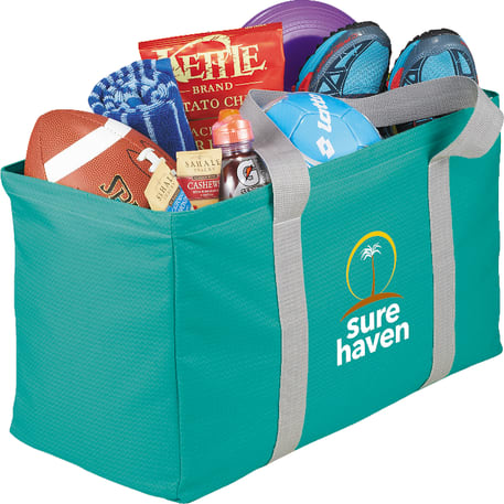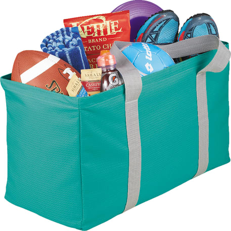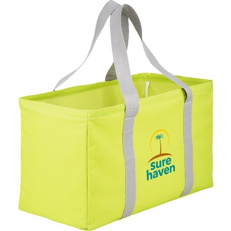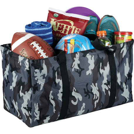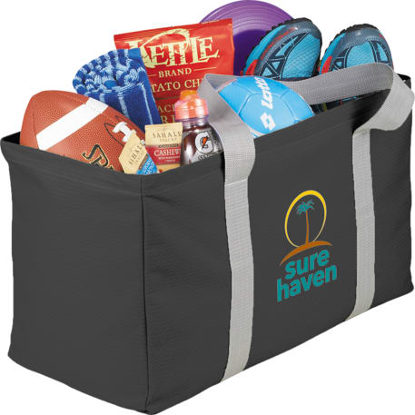 The versatile size of this tote makes it perfect for traveling, vacations, and other outdoor events. Very large open main compartment with wire rim that gives bag its shape and sturdiness. 14" handle drop height. Choose from trendy chevron colorways or the always popular graphite finish.
