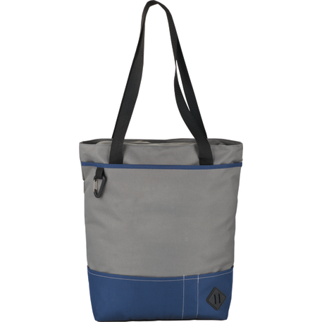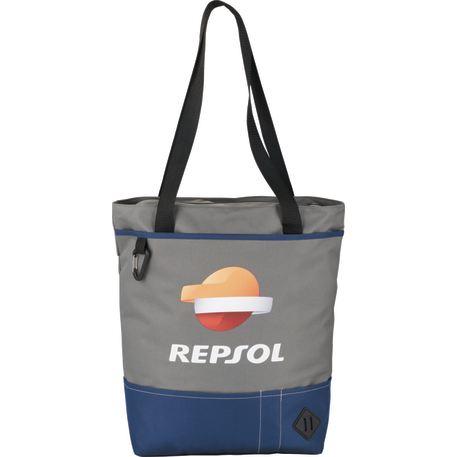 This is the ideal trendy convention tote. Zippered main compartment. Hook and loop closure front slash pocket. Phone and organizational pockets running along the base of the tote including a pen slot. D-ring and added corner detail to hang keys or water bottle. 14.5" handle drop height. Disclaimer: There may be minor variations in color of the actual product due to the nature of the fabric dyes, weaves and printing.