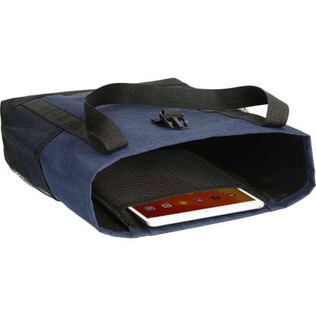 This trendy convention tote is ideal to carry up to a 11" tablet and other accessories. Clip and flap main compartment closure. Mesh pockets on both sides of this tote for added storage. 11" handle drop height. Disclaimer: There may be minor variations in color of the actual product due to the nature of the fabric dyes, weaves and printing.