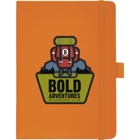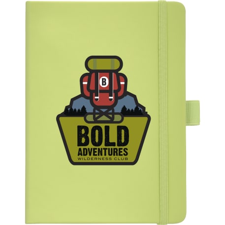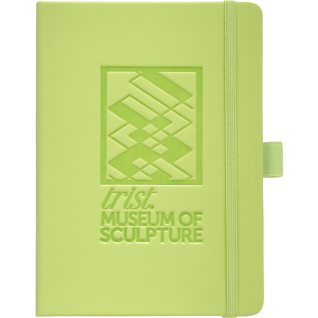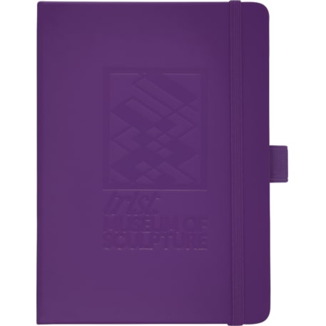 Soft touch, hard cover bound journal with built in elastic closure. Color matching elastic pen loop and ribbon page marker. Includes 72 sheets of white lined paper.