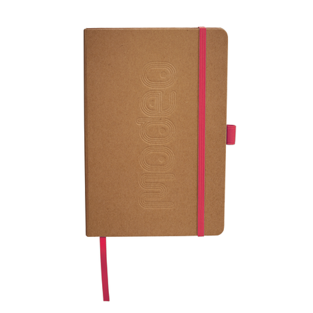 The 5.5" x 8.5" Eco Color Bound JournalBook® features a recycled paper hard bound cover, color accent painted edge pages, color matching built-in elastic closure and pen loop. Includes ribbon page marker, expandable accordion pocket and 80 sheets of cream lined paper. FSC certified. Through a partnership with 1% For The Planet, one percent of sales of this and all EcoSmart products will be donated to nonprofits dedicated to protecting the planet. Due to the nature of the material, there may be color variances.